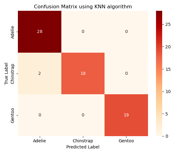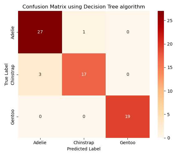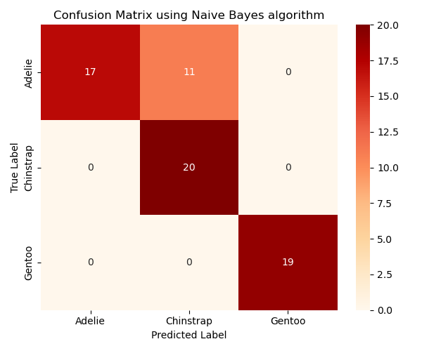To evaluate the performance of different algorithms in classifying penguin species, we compare their accuracy scores and confusion matrices. The algorithms we the adopted in the previous sections include: