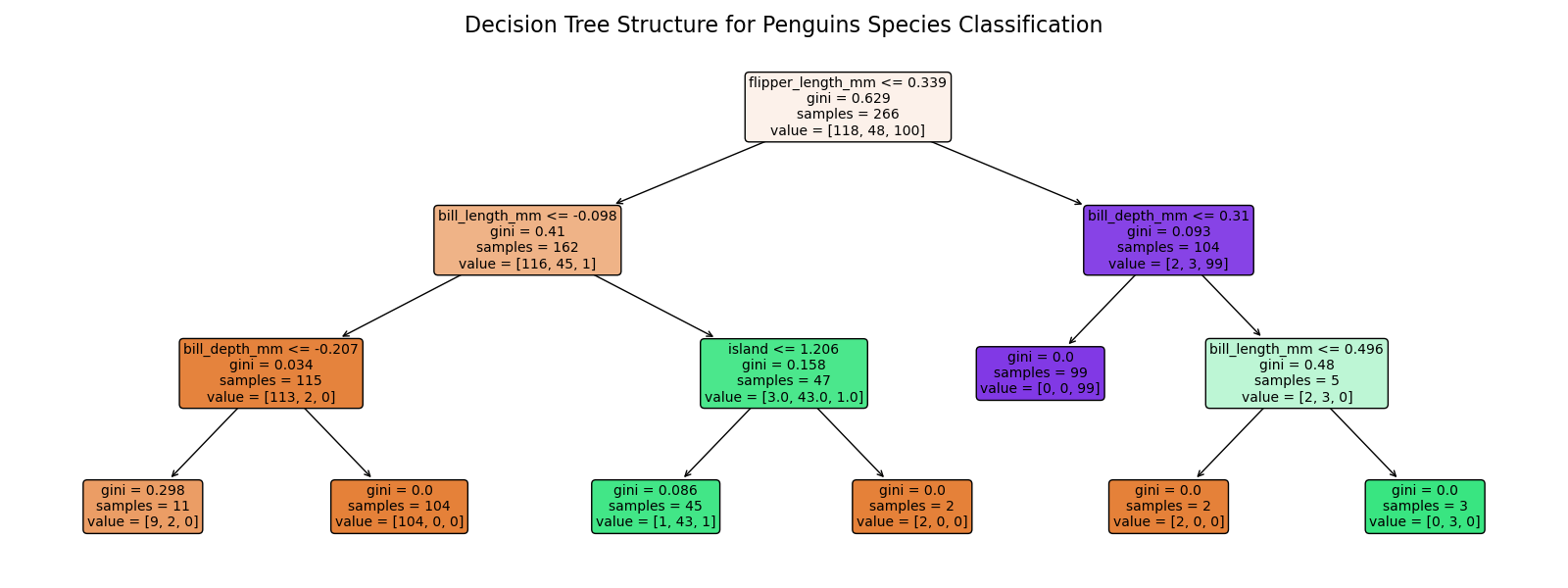 Applied a range of classification algorithms — instance-based, probability-based, margin-based, tree-based, and neural network-based — to classify penguin species.