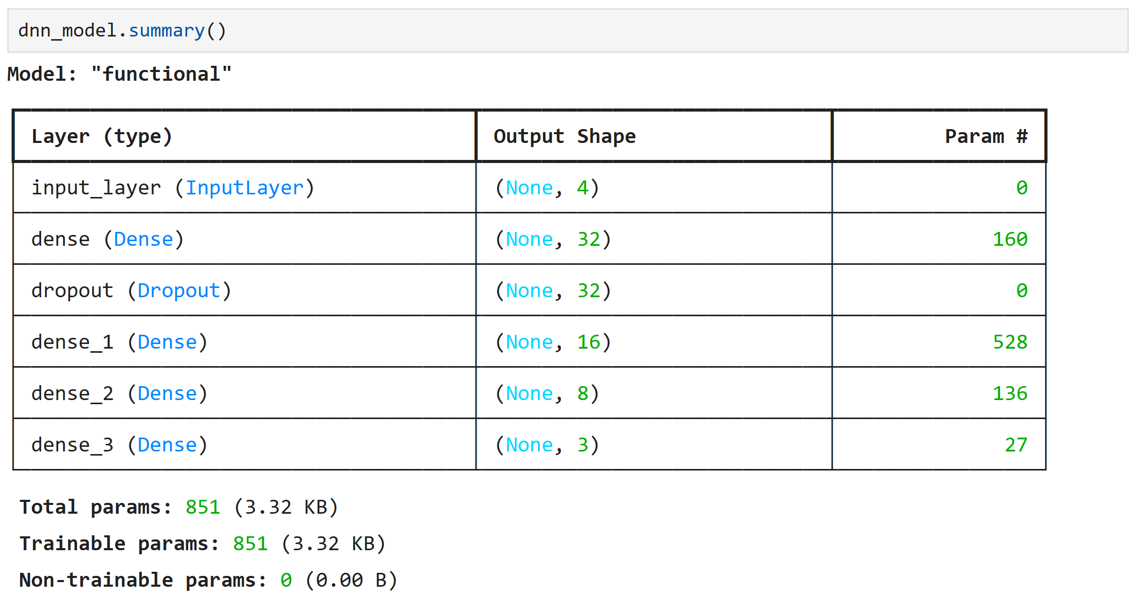 to print a concise summary of a DNN’s architecture. It provides provides an overview of the model’s layers, their output shapes, and the number of trainable parameters, making it easier to understand and debug the network.